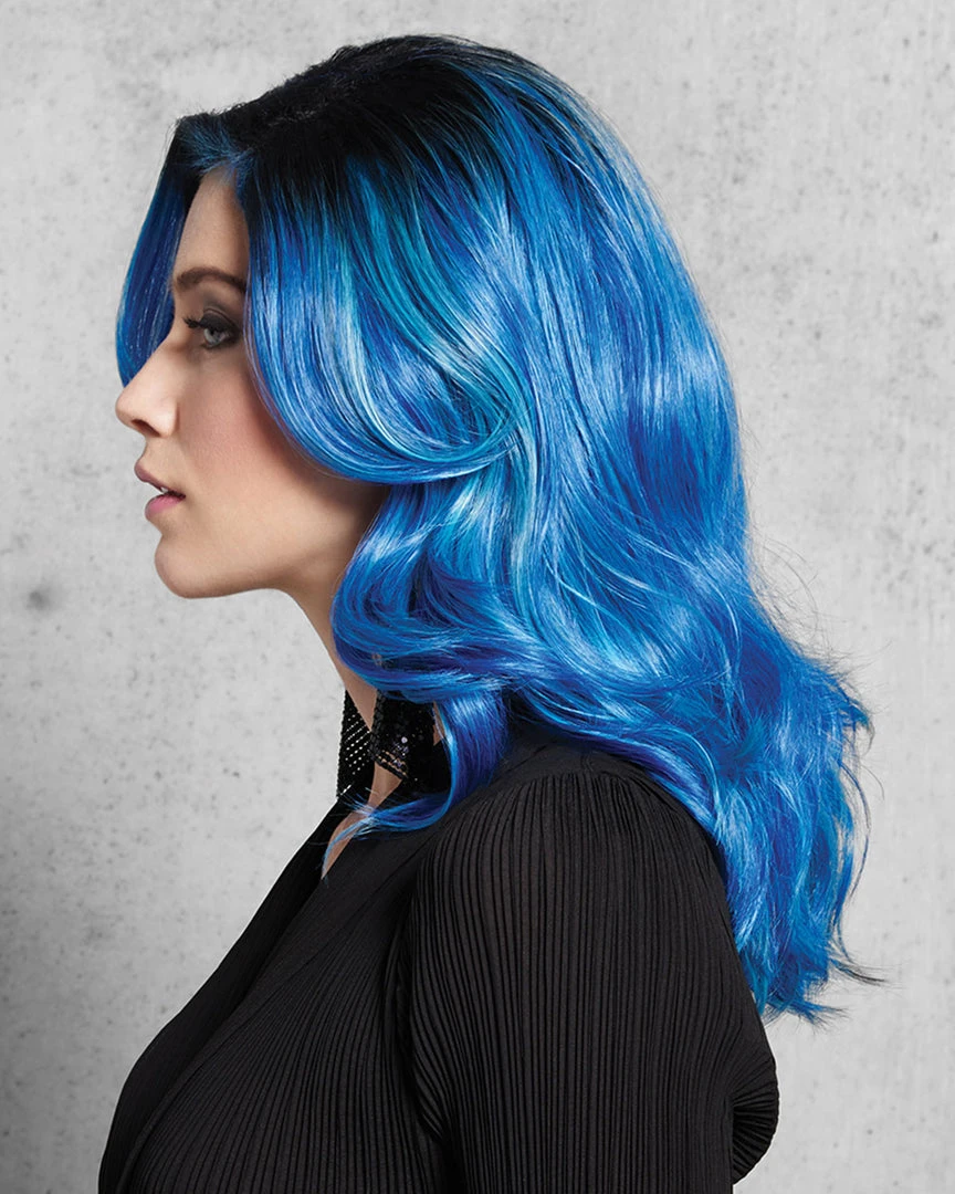 Mermaid hair is just seconds away. Make a splash in this bold blue with on trend waves. Colors flow from a dark root to bold and baby blues. The Tru2Life Heat-friendly synthetic fiber can be styled curly or sleek. With a comfortable cap design you can wear it for a night out or even all day. Blue Waves will have you crushing it in the hair department.