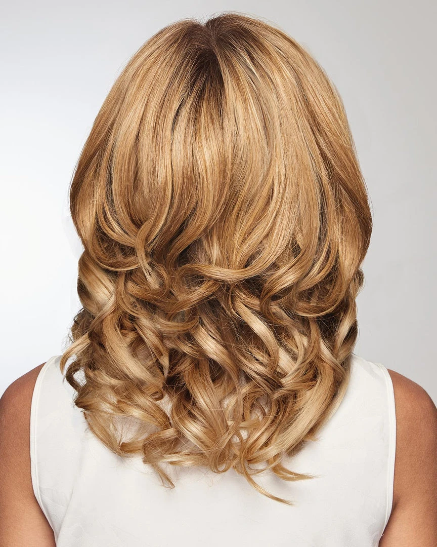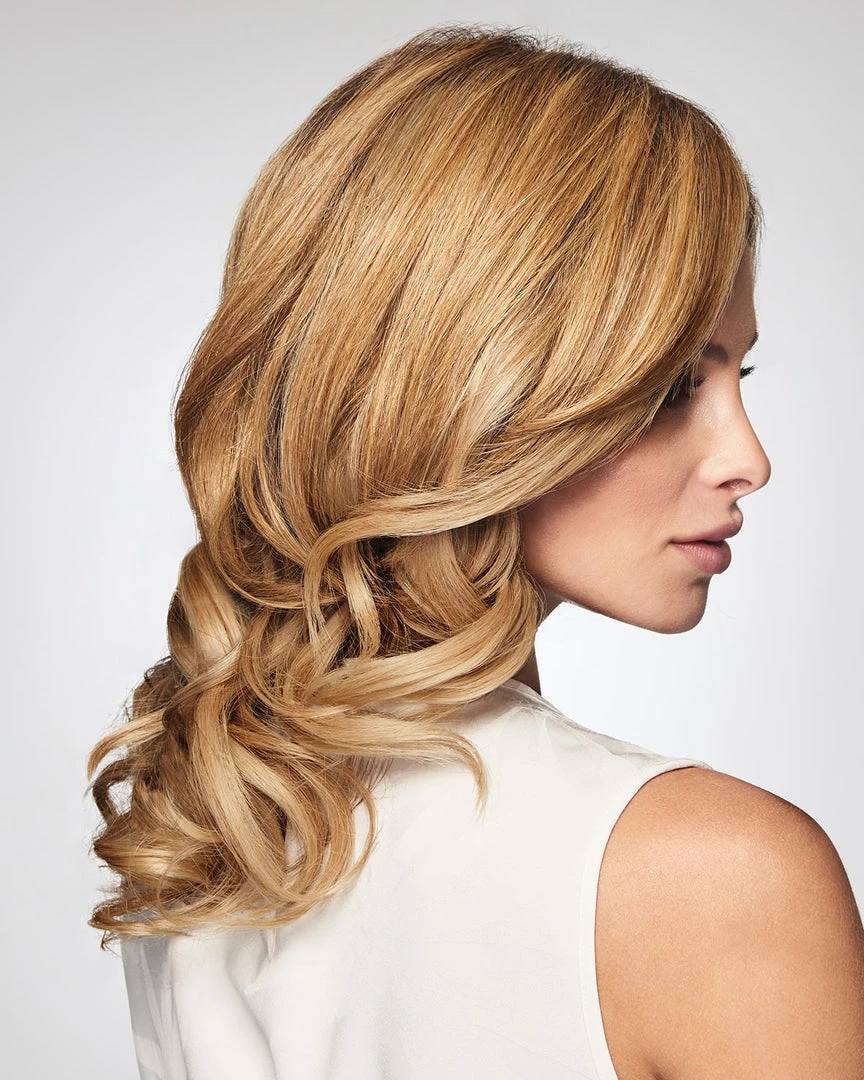 Designed for the woman with chin-length or longer hair who wants added volume on the top, On The Go 10” is a layered, chin-length top-of-head piece that provides beautiful coverage while perfectly blending into your own hair. The monofilament top allows the piece to be parted in the center, or on either side for a dramatic sweeping bang. The heat-friendly synthetic Tru2Life fiber lets the wearer determine the curl pattern.