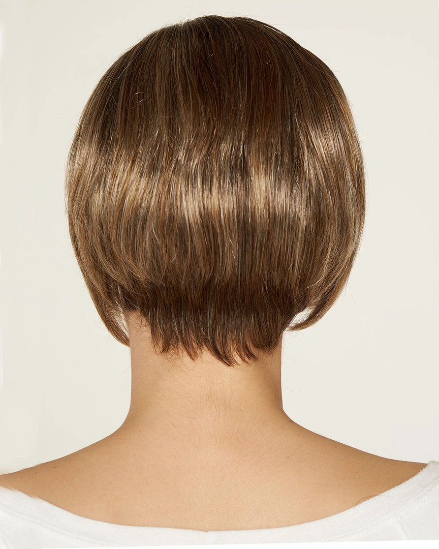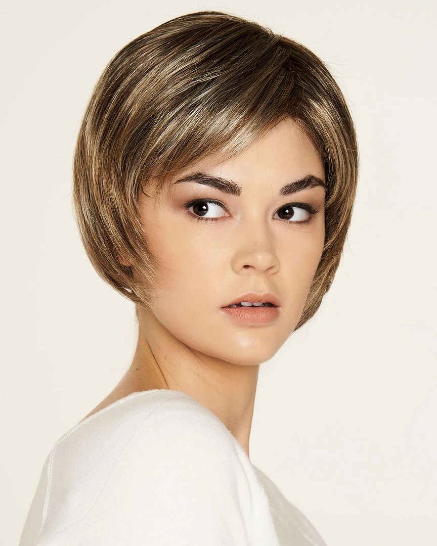 Naples is a short smooth hand-tied shag with a lace front construction for versatility and realism. The look of hair growth at the scalp with off the face styling provide confidence. Easy wear, lightweight with open wefts along the inside sides and back of wig cap allow breath-ability. A flattering style for most any face shape, and perfect choice as a medical wig for women with sensitive scalps and hair loss.