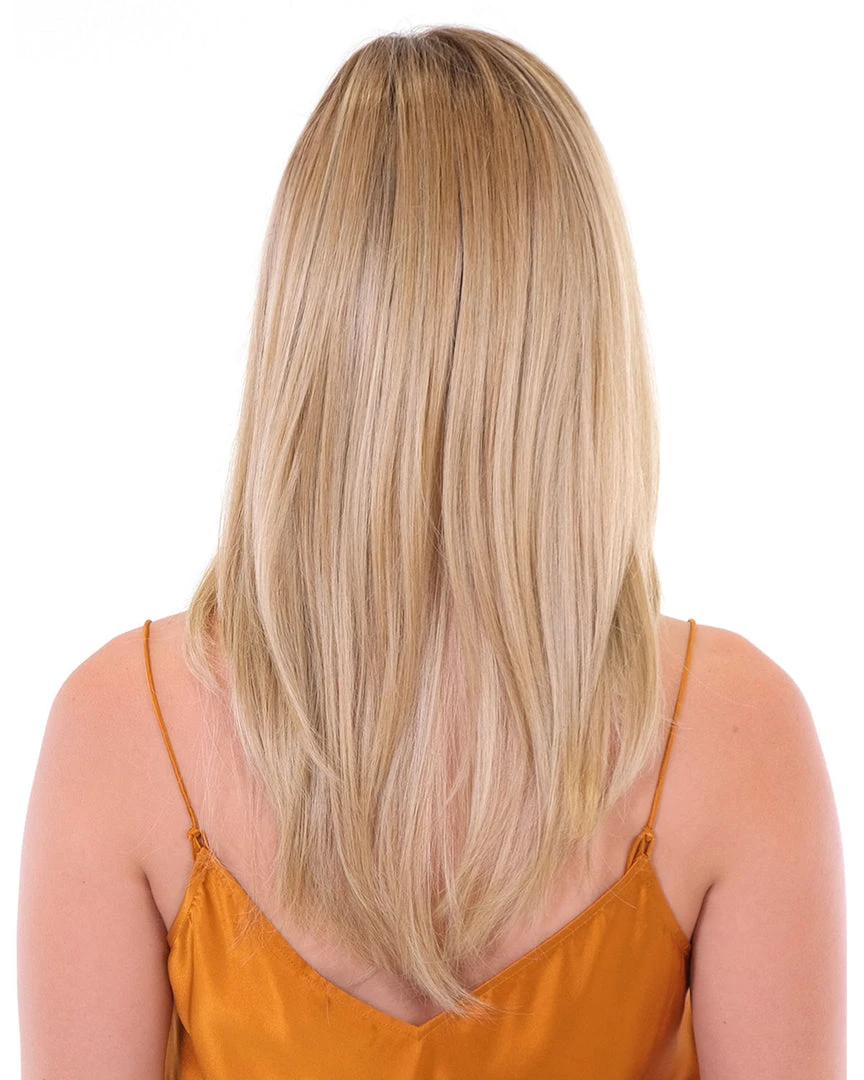 Luxurious all hand-knotted base without any added machine made wefts delivers the ultimate comfort experience. Extremely light weight while providing enough coverage and seamless volume due to the deluxe, multi-directional, flexible base. Blends beautifully to add fullness and to cover the thinning crown especially the new growth between the colors.