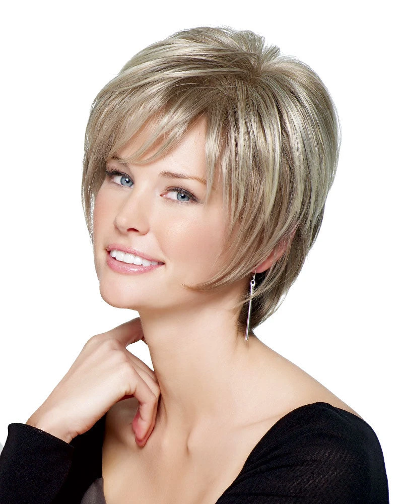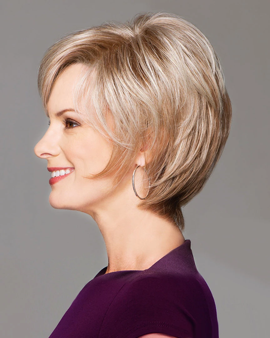 With a hand-knotted top and lace front for a life-like hairline and varied styling options, this short, face framing shag reflects the straight, smooth cuts featured on the latest fashion runways.