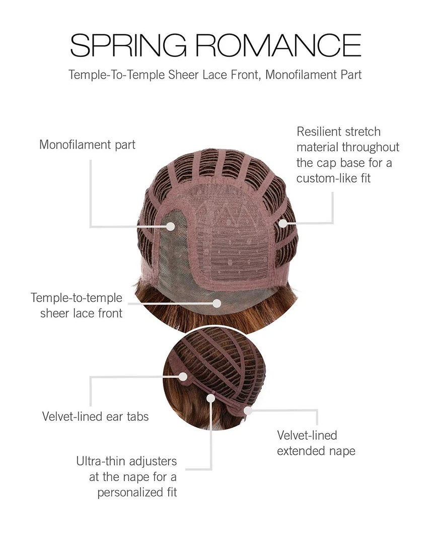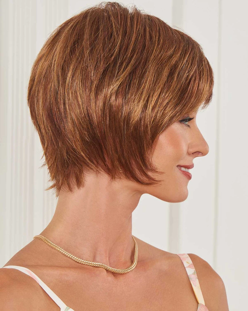 Fall in love with Spring Romance from Eva Gabor. This easy-to-wear chin-length wig throws a modern spin on a classic textured shag style. With its tapered ends and perfect razor-cut layers, this wig is edgy yet soft thanks in part to its charming eyelash bang. Style them as is or away from your face for optimal charm. The comfortable low-density lace front wig provides an airy feel in the summer months.