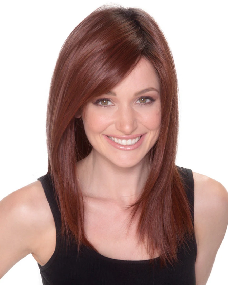 Layered straight cut not only create movement and bounce but also stops the hair from looking too heavy. “Straight Press 18” is made with heat friendly premium fiber that looks and feels just like your own. Wear straight out of the box, no need for styling. Light weight, soft and silky, modern and beautiful piece is a must have! Beautiful hand-made lace front not only delivers extremely natural hairline but also provides endless option for versatility. Without spending hours trying to create perfect blow- dried hair, you can create that “just left salon” look with “Straight Press 18“.