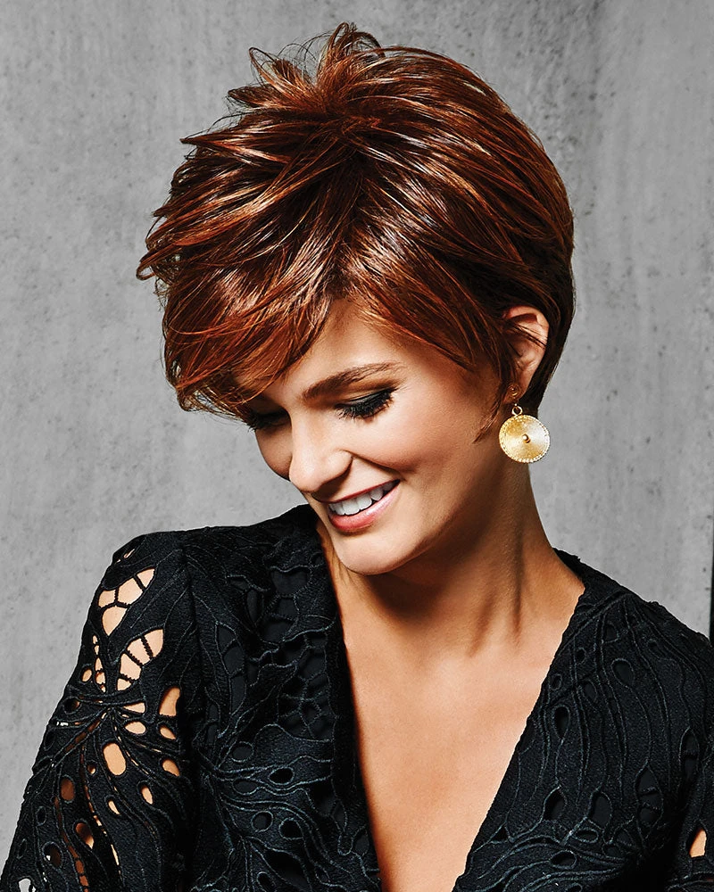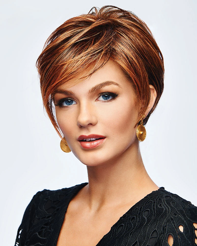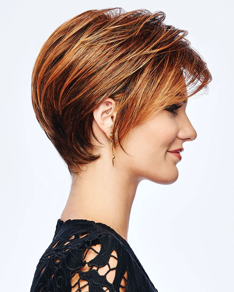 A modern salon-styled approach to the classic boy cut, this style features face-framing sides, smooth volume and a sophisticated tapered nape. Made with Tru2Life synthetic hair, it can be curled or straightened with thermal styling tools to achieve your desired look.