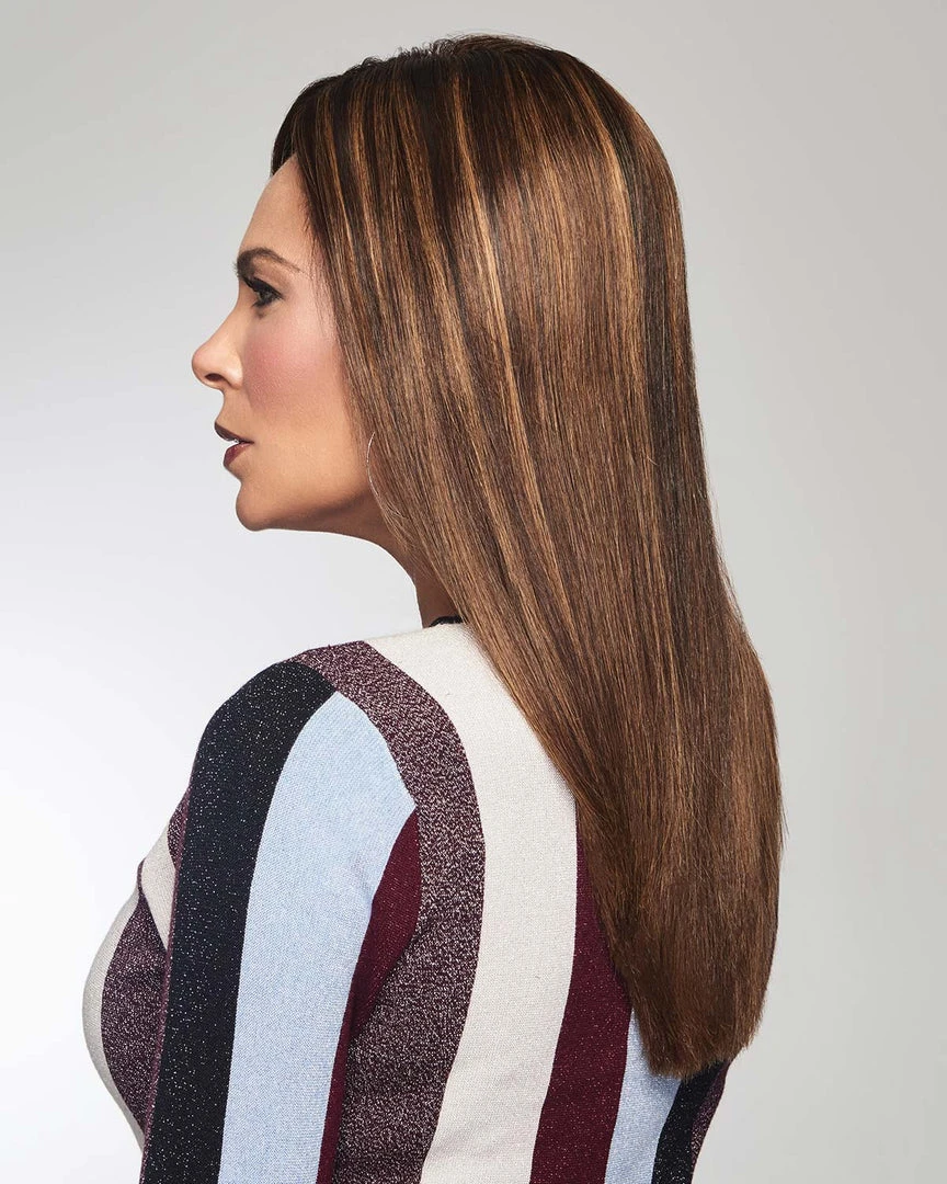 And nothing would be more delicious than this high-impact look: ‘Indulgence’. Effortlessly elegant, this top-of-head piece provides fuller volume on top. Delicious? No, irresistible!
