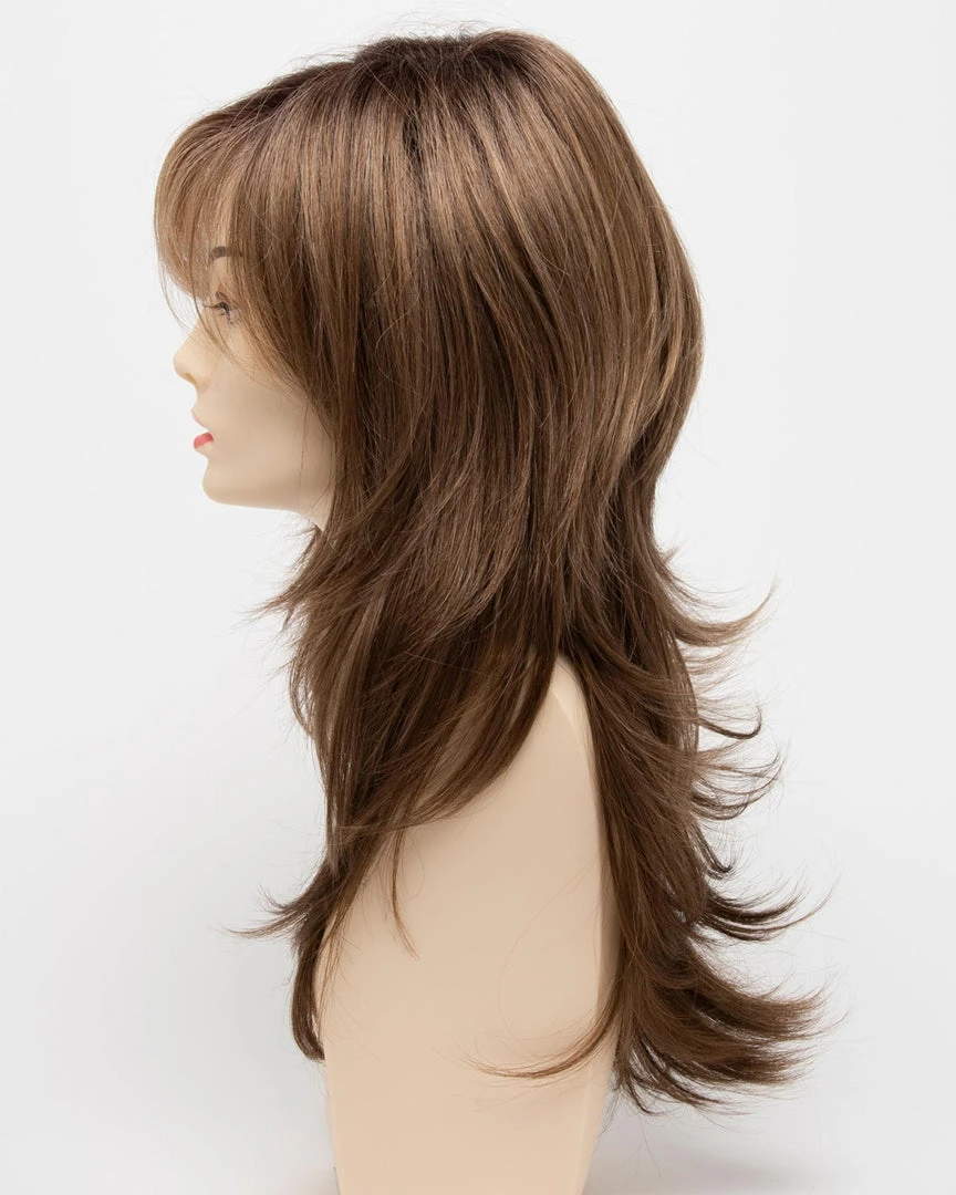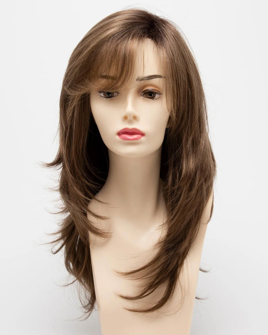 Celeste by Envy offers our Mono Top construction on this long layered face framing bombshell. Layers upon layers create trendy tresses that can be combed with side wept bangs or towards the face for that bombshell bangs styling and appearance.