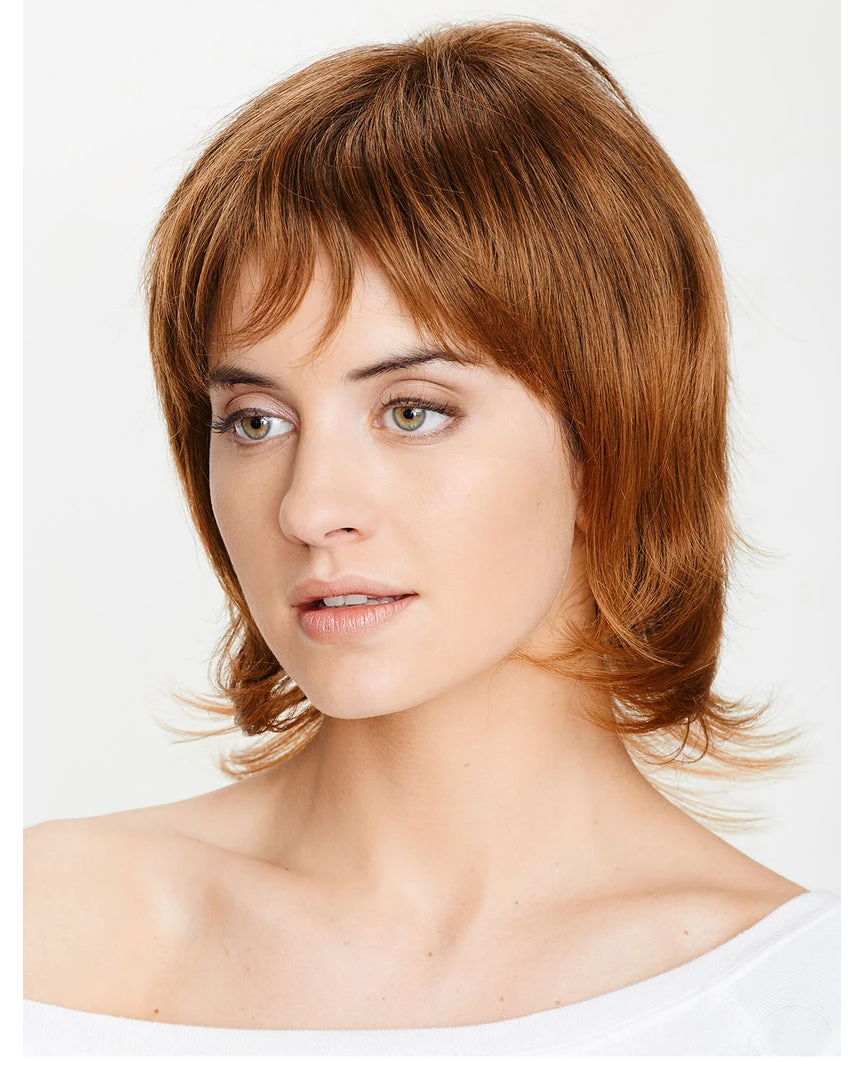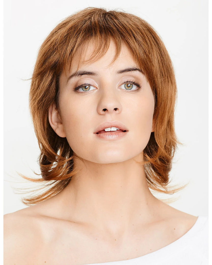 Featuring a sleek body that is structured with rigged layers, a piecey bang and wispy bottom pieces that flare at the neck, the Linda is a wig that’s playful, fun and a bit flirtatious.