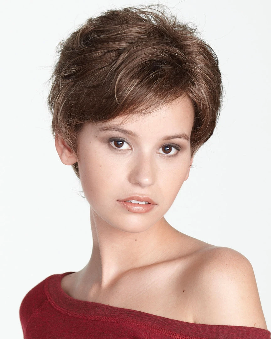 Madison is a short soft waves boy cut with added volume and tapered layers. Realism and comfort define this look. An effortless style with the confidence of hand-tied hair fiber in a smooth mono base cap allow the appearance of a natural scalp with hair growth. A confident yet classic silhouette designed for lightweight airy wear. Finger style and go. A terrific choice for women in need of a medical wig.